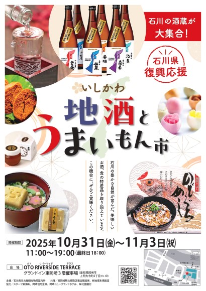 2025年10月31日(金)~11月3日(祝)の4日間で、石川県の地酒・物産店をグランドイン東岡崎3階で開催しております。